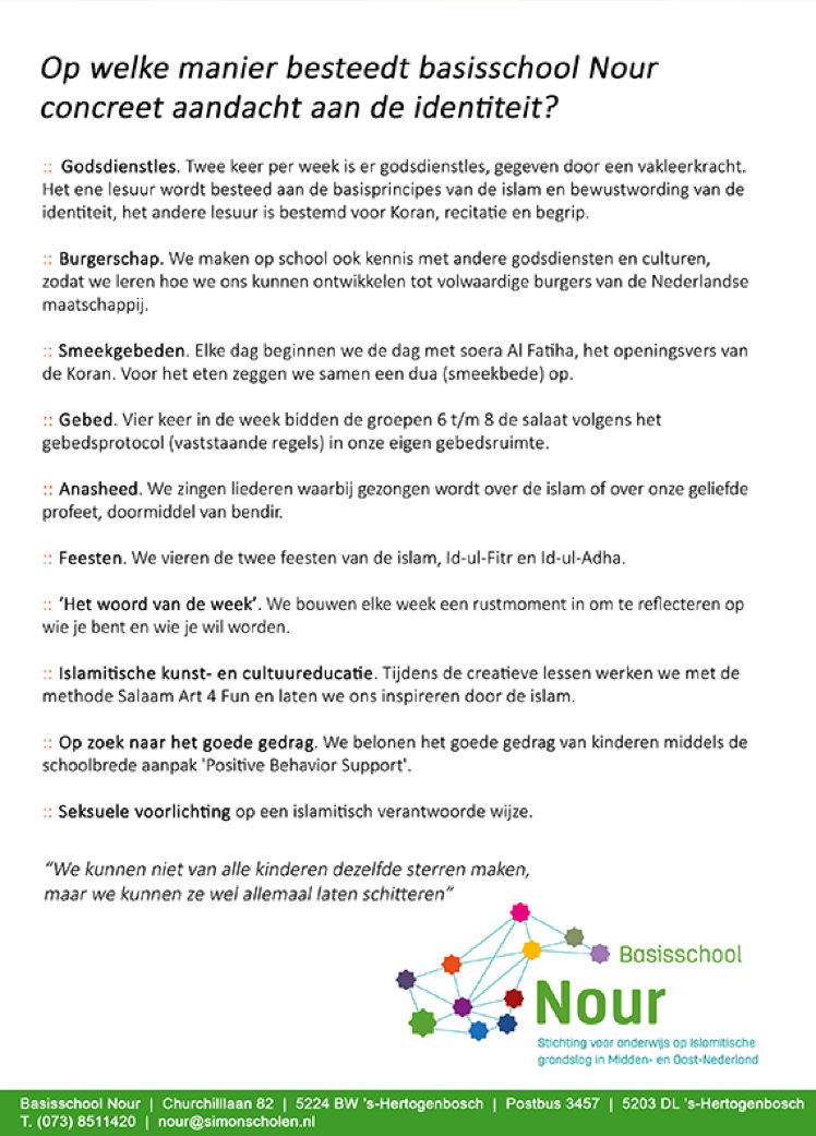 Kortom, Nour is een school onder de scholen. Een school met eigen Islamitische identiteit, maar ook gewoon een basisschool als alle anderen.